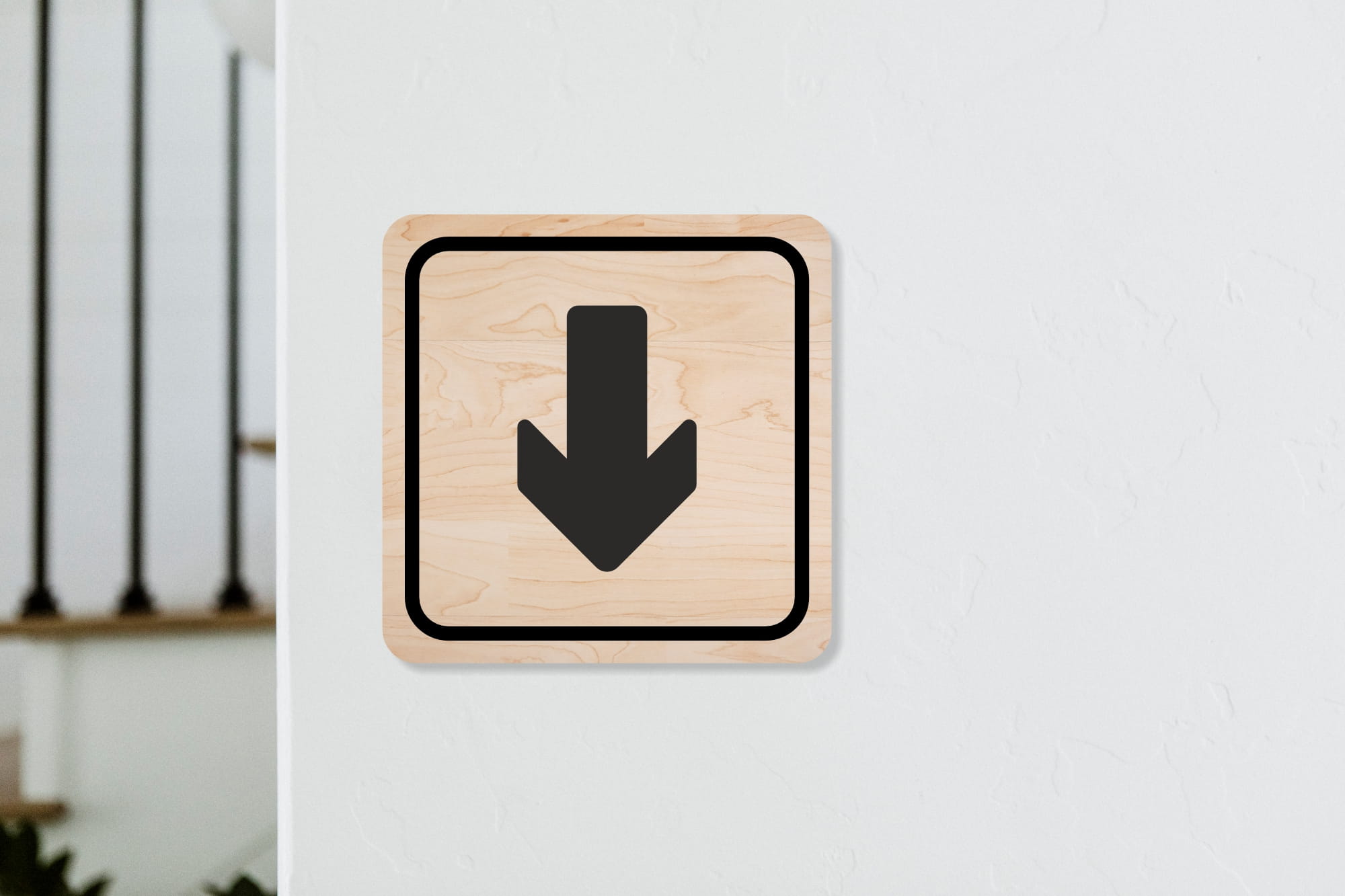 Drewniana tabliczka informacyjna - kwadratowa - strzałka w dół 01
